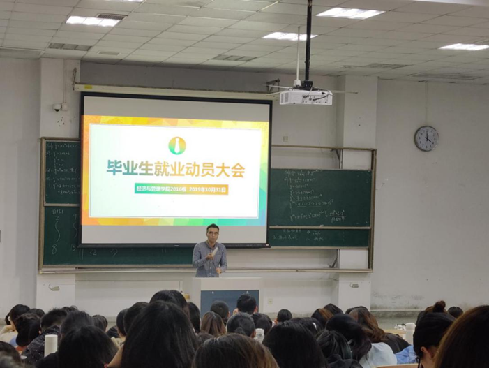 10月31日下午,公司2016年级毕业生就业动员大会在1号楼105举行,大会分三批次进行。年级辅导员张伟佳老师和祁冬杰老师,以及2016级全体员工参加本次大会。