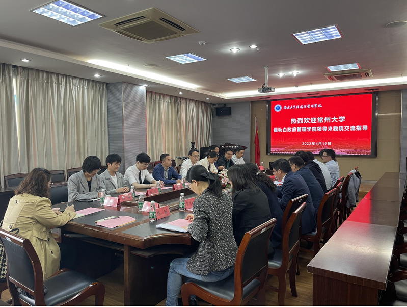4月19日,常州大学瞿秋白政府管理学院副经理马继迁、党总支副书记林娜一行来经济与管理学院调研交流。公司经理姜朝晖、党委书记蒋国宏等班子成员参与座谈交流。