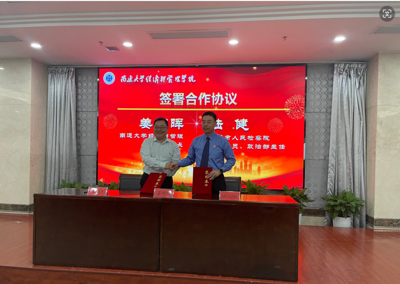 11月3日下午,公司与南通市人民检察院在学校图书馆举办检校合作协议签约仪式,并为共建的“法学教育与研究基地”揭牌。公司党委书记尚庆飞,南通市检察公司党组书记、检察长恽爱民出席活动并致辞。公司党委常委、副董事长陆俊杰出席仪式。活动由经济与管理学院经理姜朝晖主持。